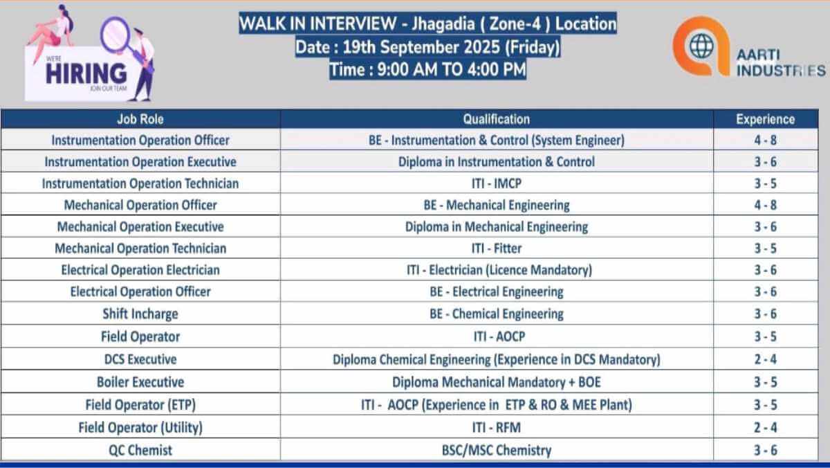 Aarti Industries Walk-in Interview 2025 | Hiring Engineers, Technicians & Chemists | 19th Sept 2025