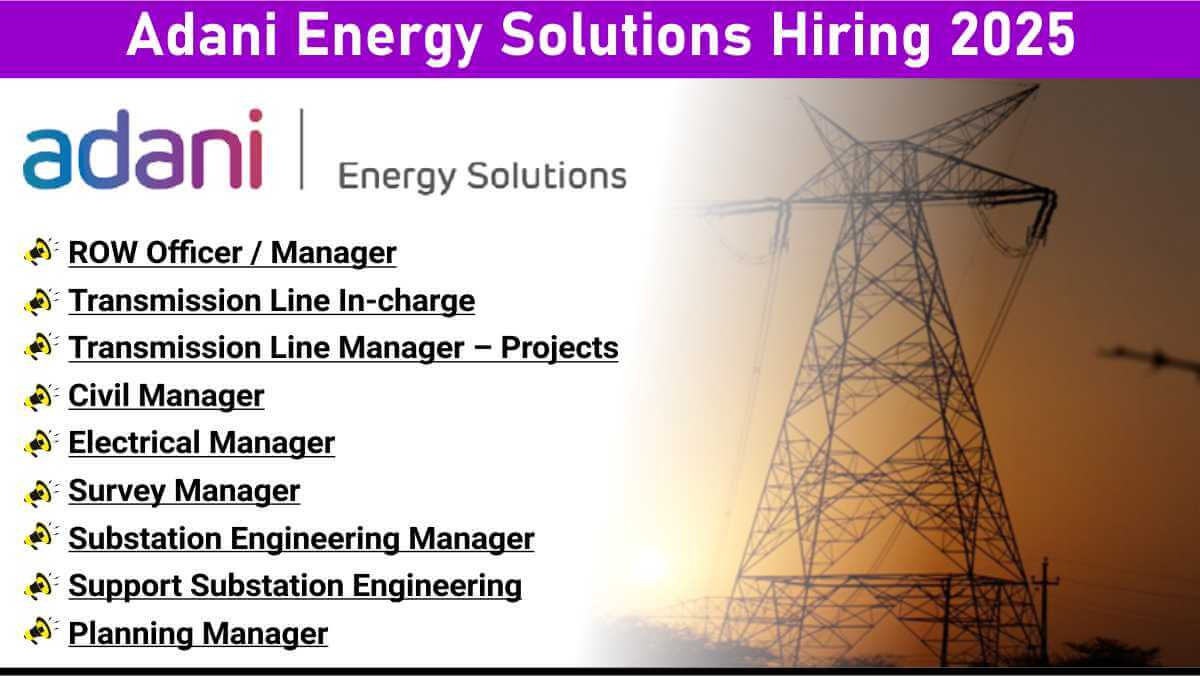 Adani Energy Solutions Hiring 2025 | Civil, Electrical & Project Management Jobs