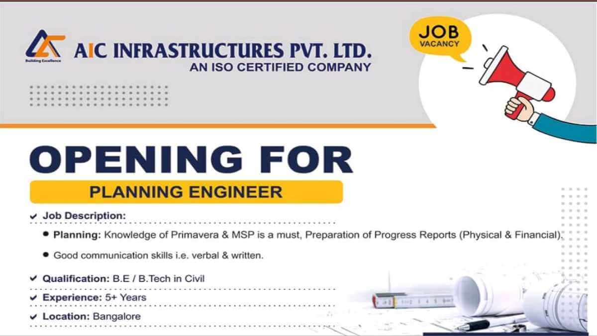 AIC Infrastructures Hiring | Planning Engineer – Bangalore | Apply Now
