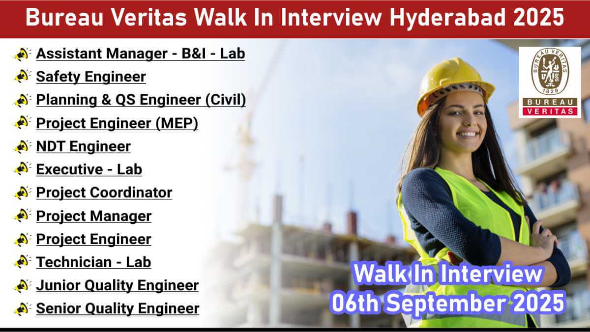 Bureau Veritas Walk In Interview Hyderabad 2025 | Civil, Mechanical, Electrical Jobs