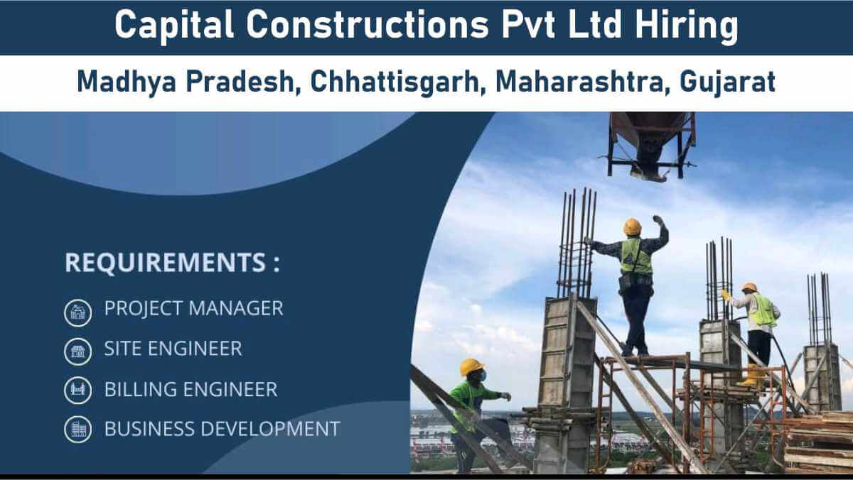 Capital Constructions Pvt Ltd Hiring | Project Manager, Site Engineer, Billing Engineer & BD