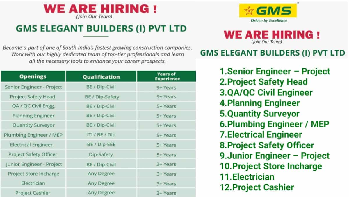 GMS Elegant Builders Recruitment 2025 | ITI, Diploma and Degree Job