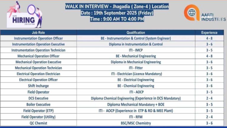 Aarti Industries Walk-in Interview 2025 | Hiring Engineers, Technicians & Chemists | 19th Sept 2025 …