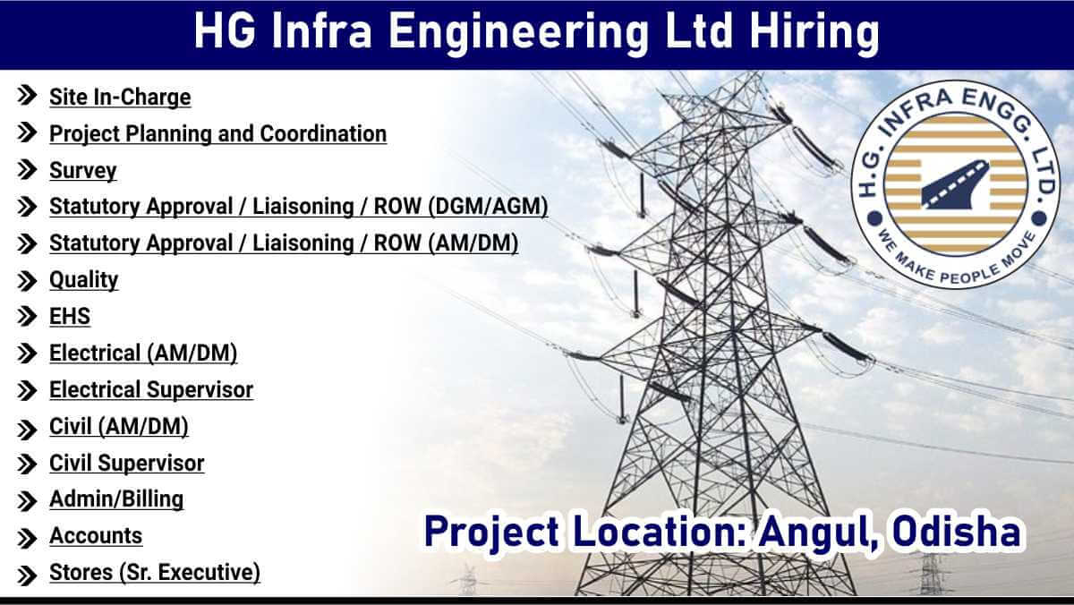 HG Infra Engineering Ltd Hiring | 15+ Positions | Electrical, Civil, Admin, Billing | Angul T&D Project