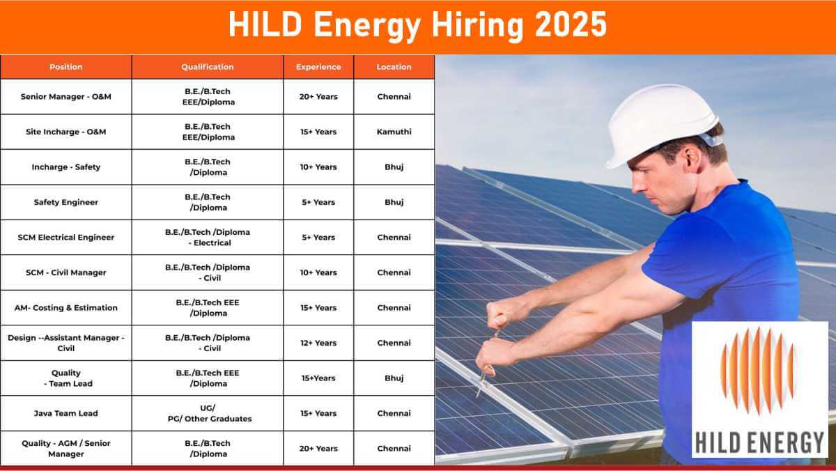 HILD Energy Hiring 2025 | Solar PV & Electrical/Civil Jobs Across India