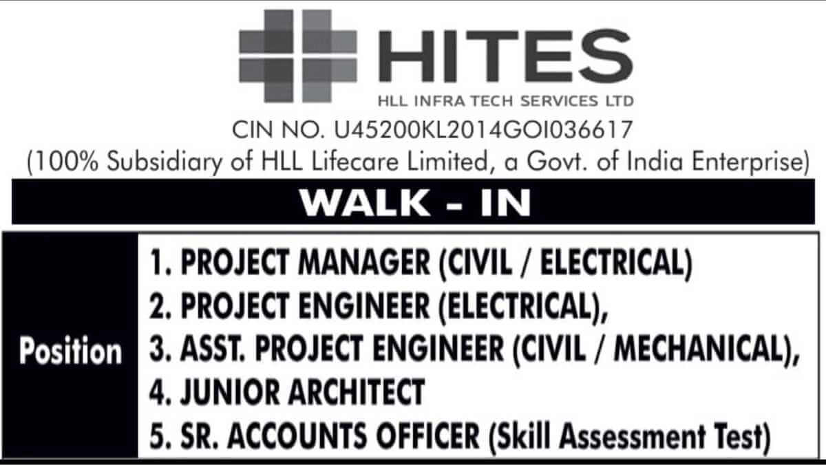 HITES Walk-In Drive 2025 | Project Manager, Engineer & Architect Jobs