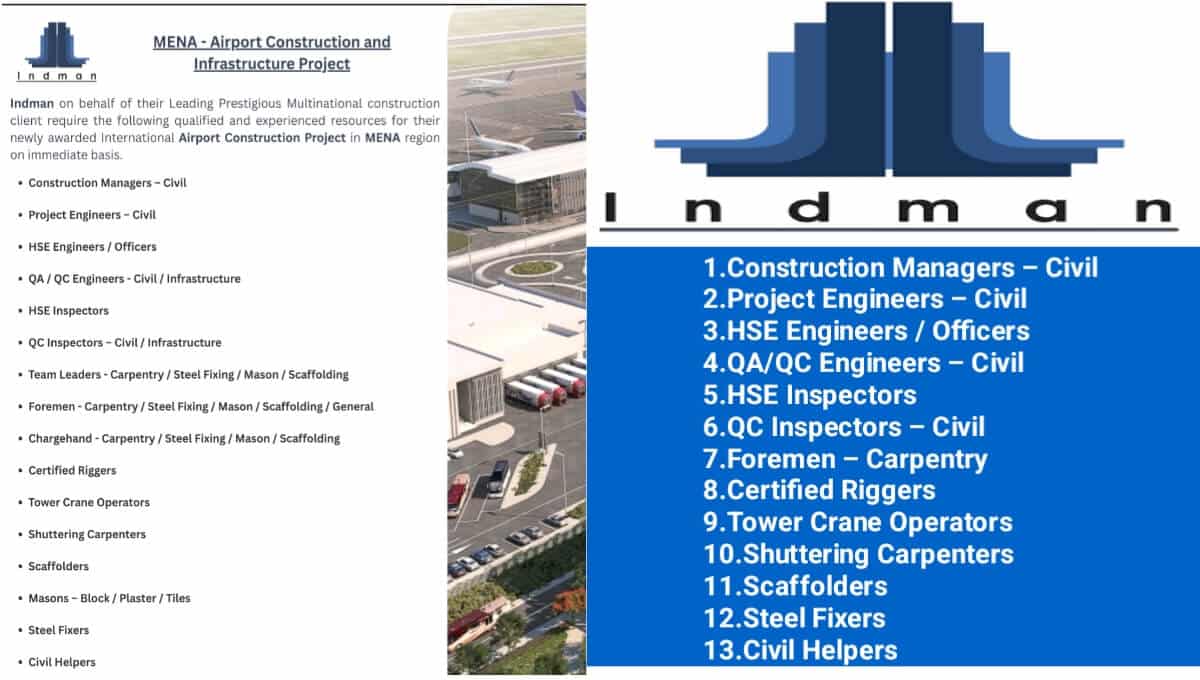 Indman Job Vacancy | Urgent International Airport Project Openings