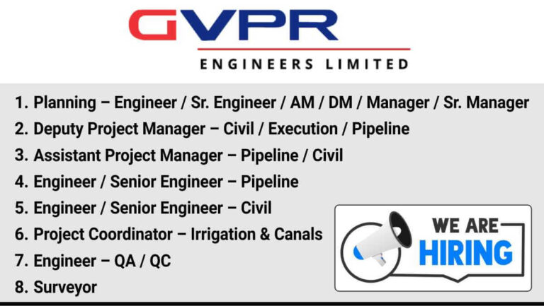 GVPR Engineers Limited Hiring | Civil, Pipeline & QA/QC Engineers Company Name GVPR Engineers Limited …