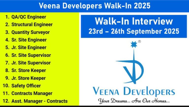 Veena Developers Walk-In 2025 | QA/QC, Site Engineers & Supervisors Mumbai Company Name Veena Developers …