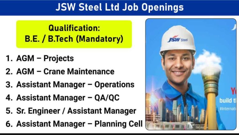 JSW Steel Ltd Job Openings | AGM, Assistant Manager & Engineer Roles | Apply Today …