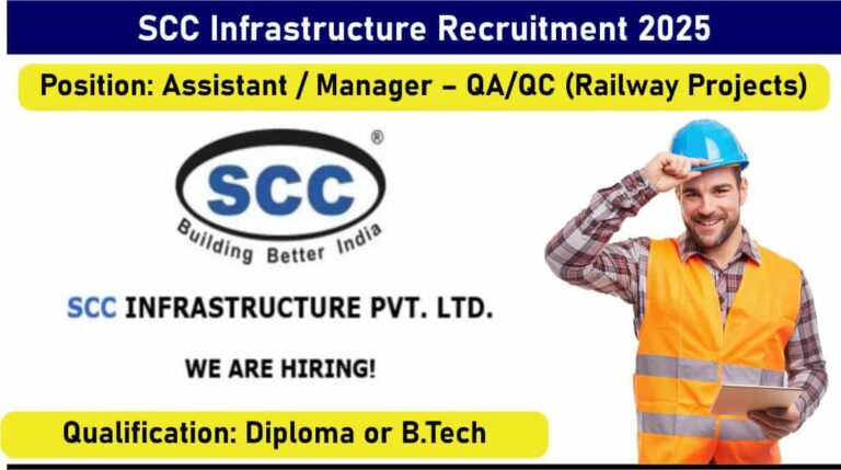 SCC Infrastructure Recruitment 2025 | QA/QC Professionals Needed Company Name SCC Infrastructure Pvt. Ltd. SCC …