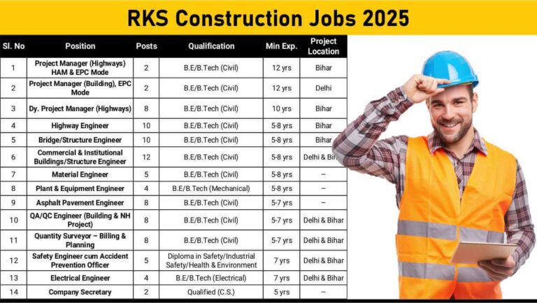 RKS Construction Jobs 2025 | Multiple Civil & Mechanical Positions | Bihar & Delhi Projects …