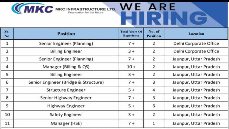 Join MKC Infrastructure Ltd | Engineers, Managers & Safety Professionals Wanted Company Name MKC Infrastructure …