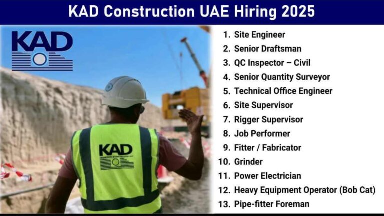 KAD Construction UAE Hiring 2025 | Engineers, Supervisors & Skilled Staff Wanted Company Name KAD …