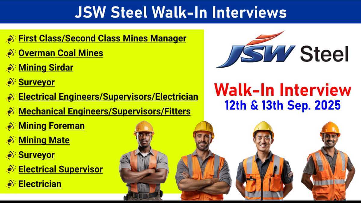 JSW Steel Walk-In Interviews | Mining & Engineering Jobs 2025