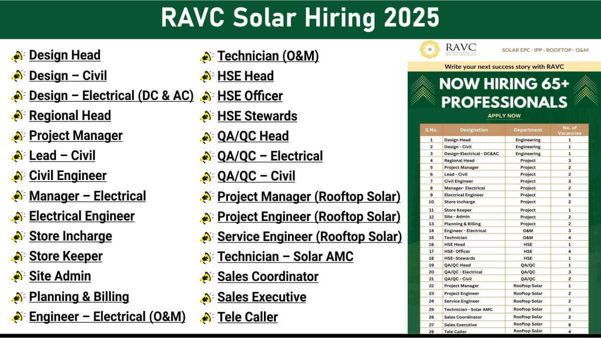 RAVC Solar Hiring 2025 | 65+ Job Openings Across India
