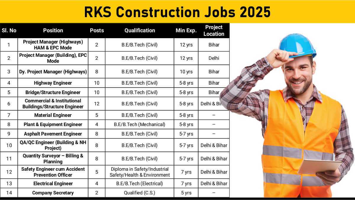 RKS Construction Jobs 2025 | Multiple Civil & Mechanical Positions | Bihar & Delhi Projects