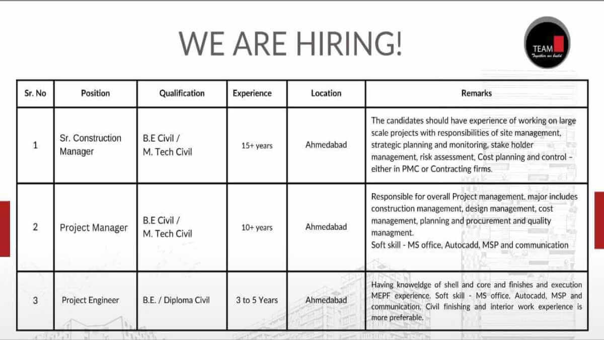 Team PMC Hiring 2025 | Sr. Construction Manager, Project Manager & Engineer