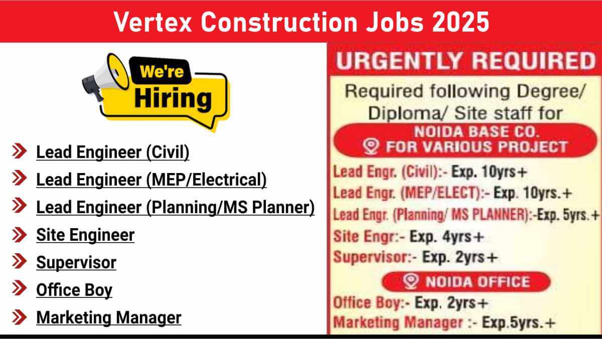 Vertex Construction Jobs 2025 | Civil, MEP, Planning Engineers Needed